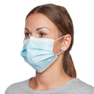 Маска одноразовая 3-х слойная с носовым фиксатором, голубая (50 шт. в упак.)
